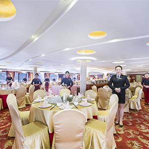 因船上餐厅空间有限,所以游客在船上用餐,不论自助餐、桌餐,统一实行固定座位,游客具体用餐座位请以上船后船方工作人员安排为准。