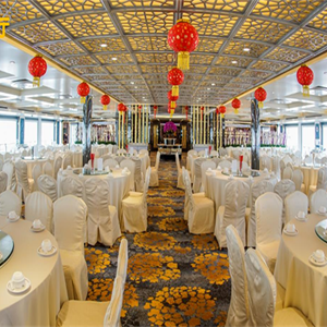 因船上餐厅空间有限,所以游客在船上用餐,不论自助餐、桌餐,统一实行固定座位,游客具体用餐座位请以上船后船方工作人员安排为准。