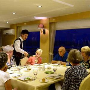 用餐:3早4正餐,早餐为中西式自助餐,正餐为中西式自助餐或桌餐,以及船长欢迎酒会和欢送晚宴